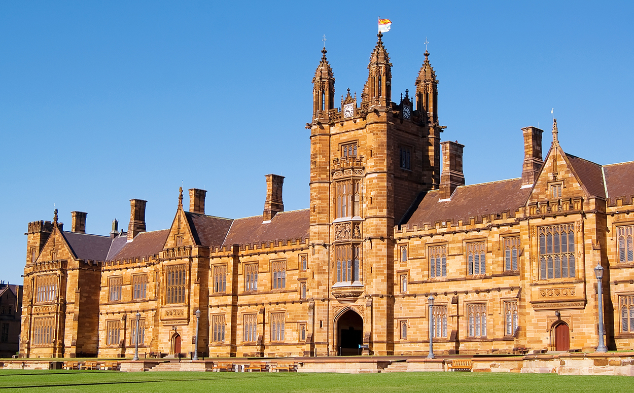 The Main Quadrangle building of the University of Sydney. Established in 1850, the university is the oldest in Oceania. It is a member of the Group of Eight (Go8).